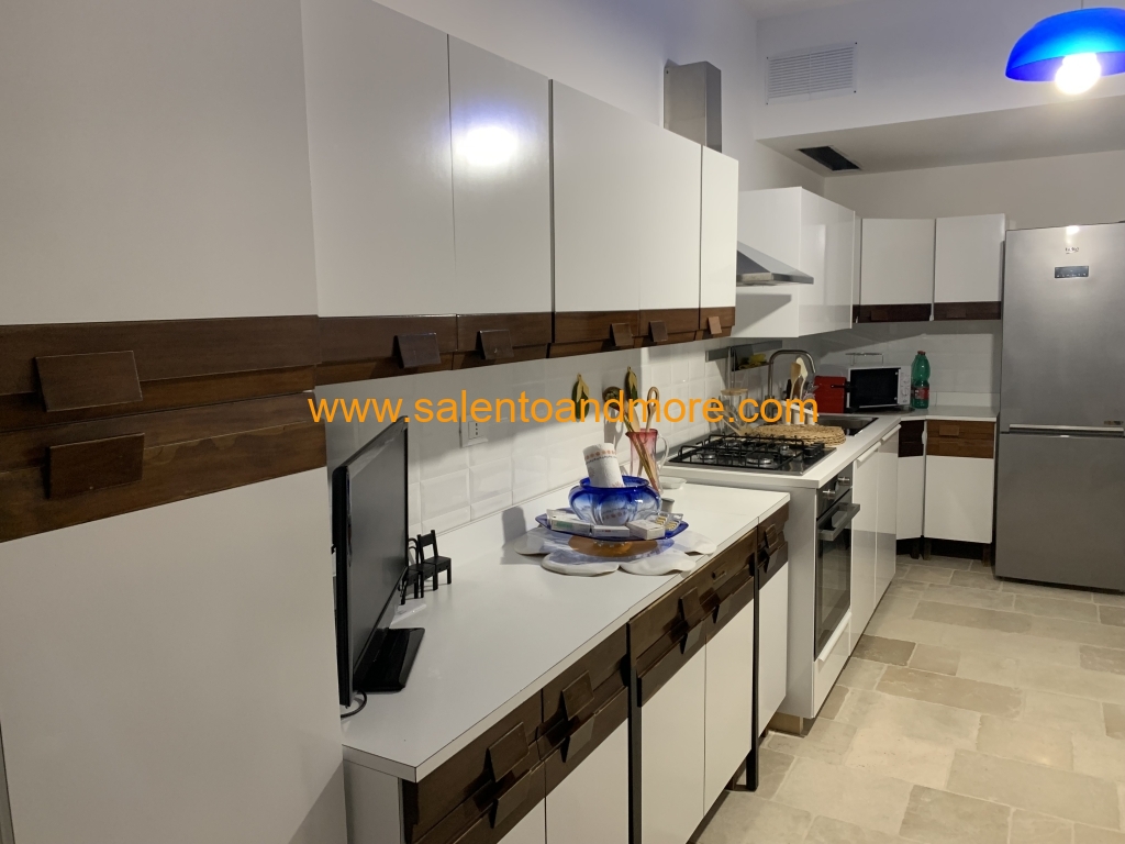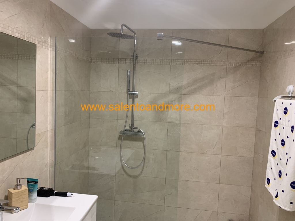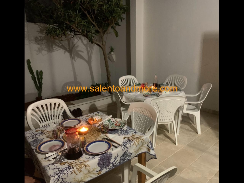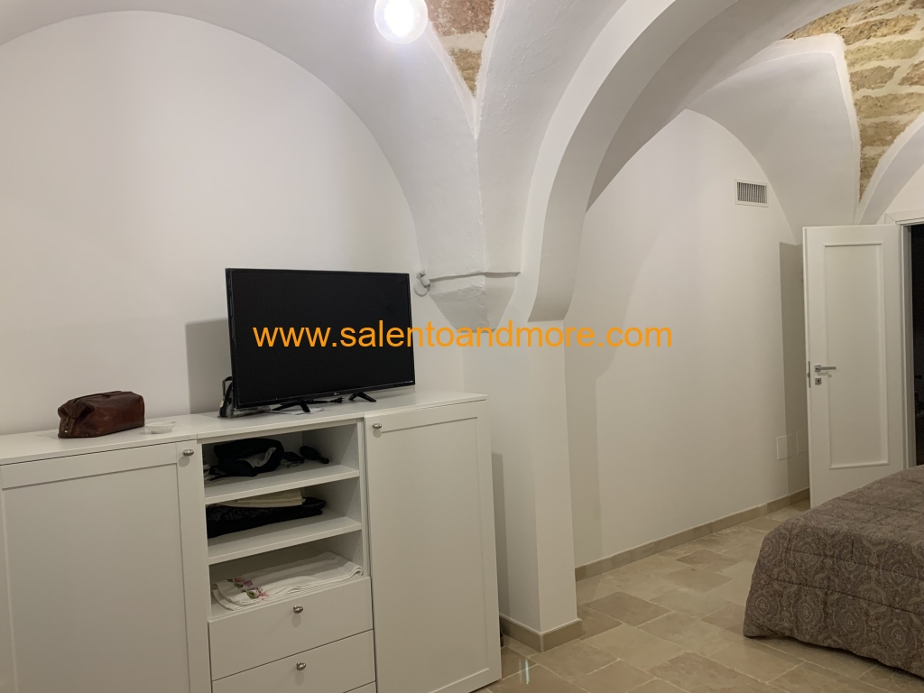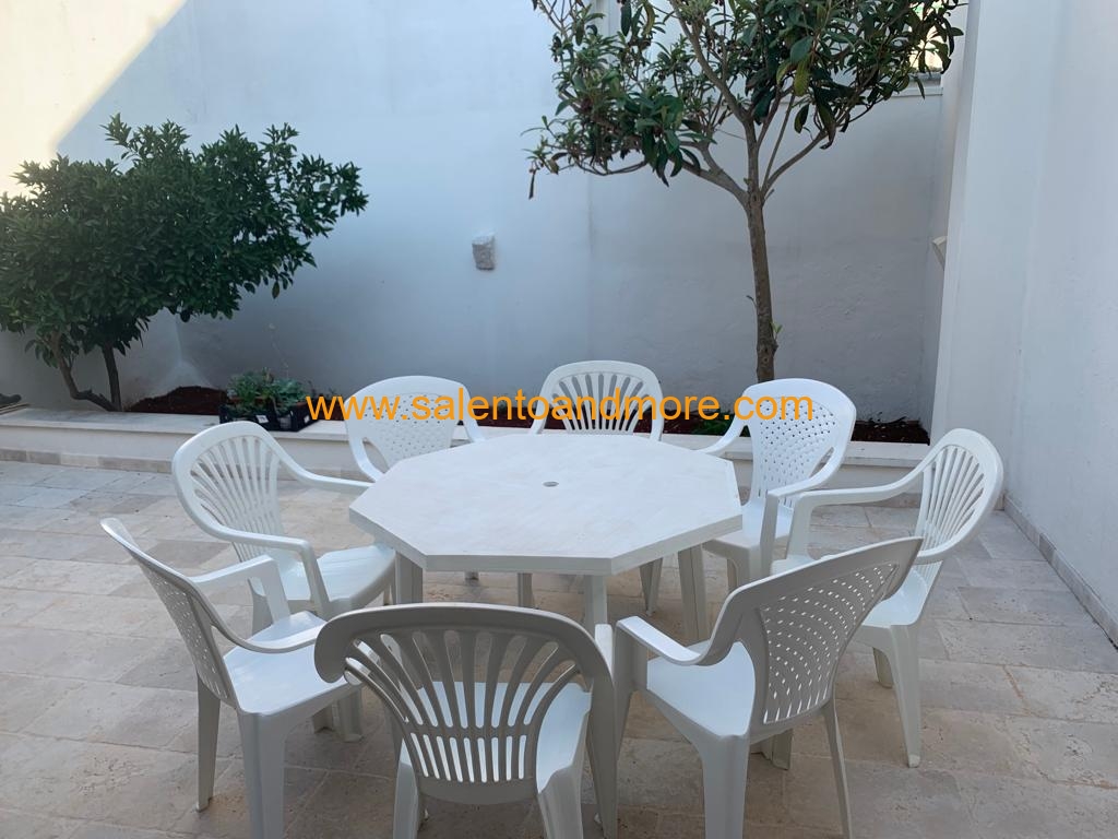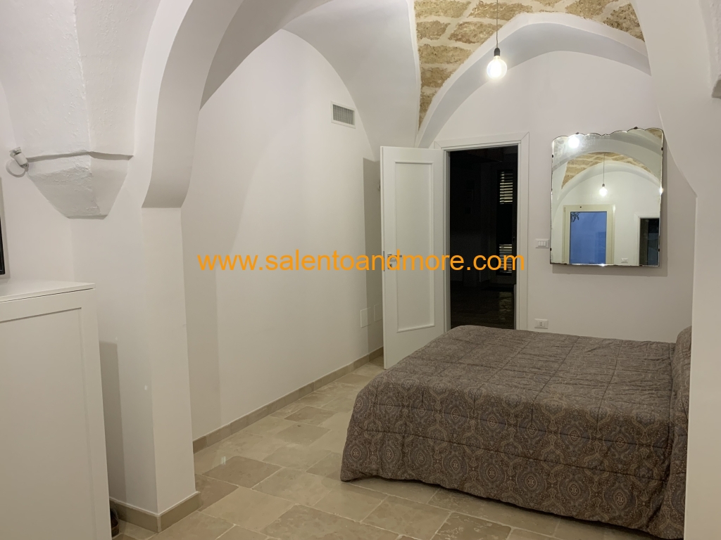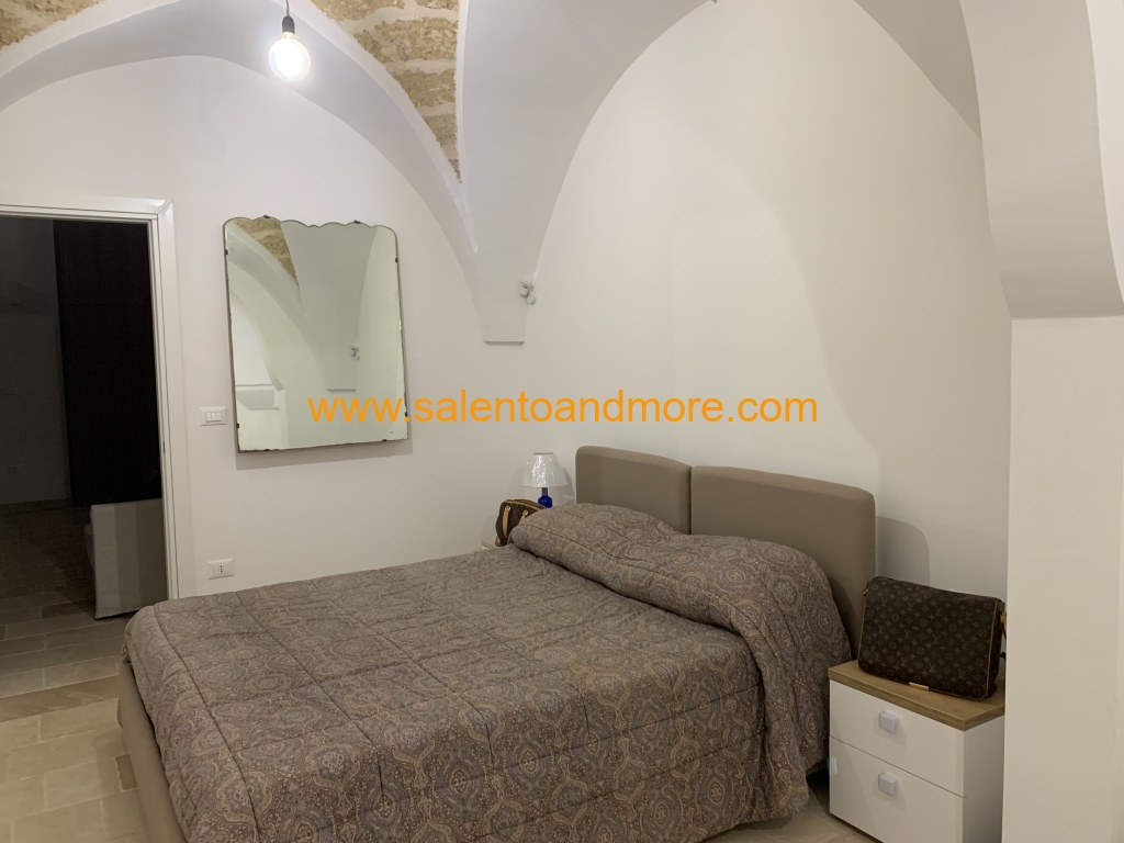 Questo alloggio per ferie nel centro di Salve comprende un'ampia stanza da letto matrimoniale voltata a stella con poltrona letto e piccolo bagno personale e un open-space soppalcato dotato di secondo letto matrimoniale con bagno personale. Questo grazioso alloggio si trova a 4 km dal mare (località Pescoluse le Maldive del Salento).