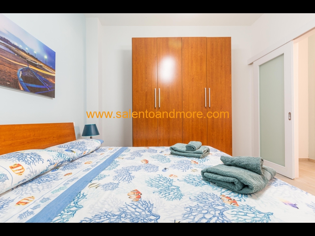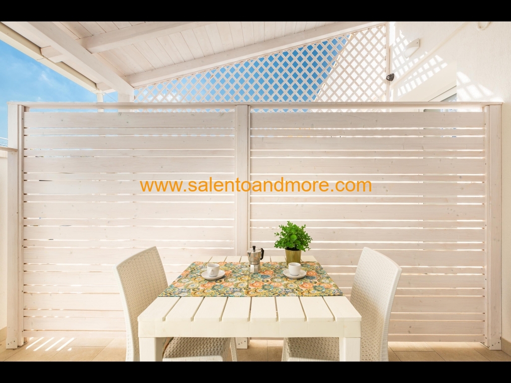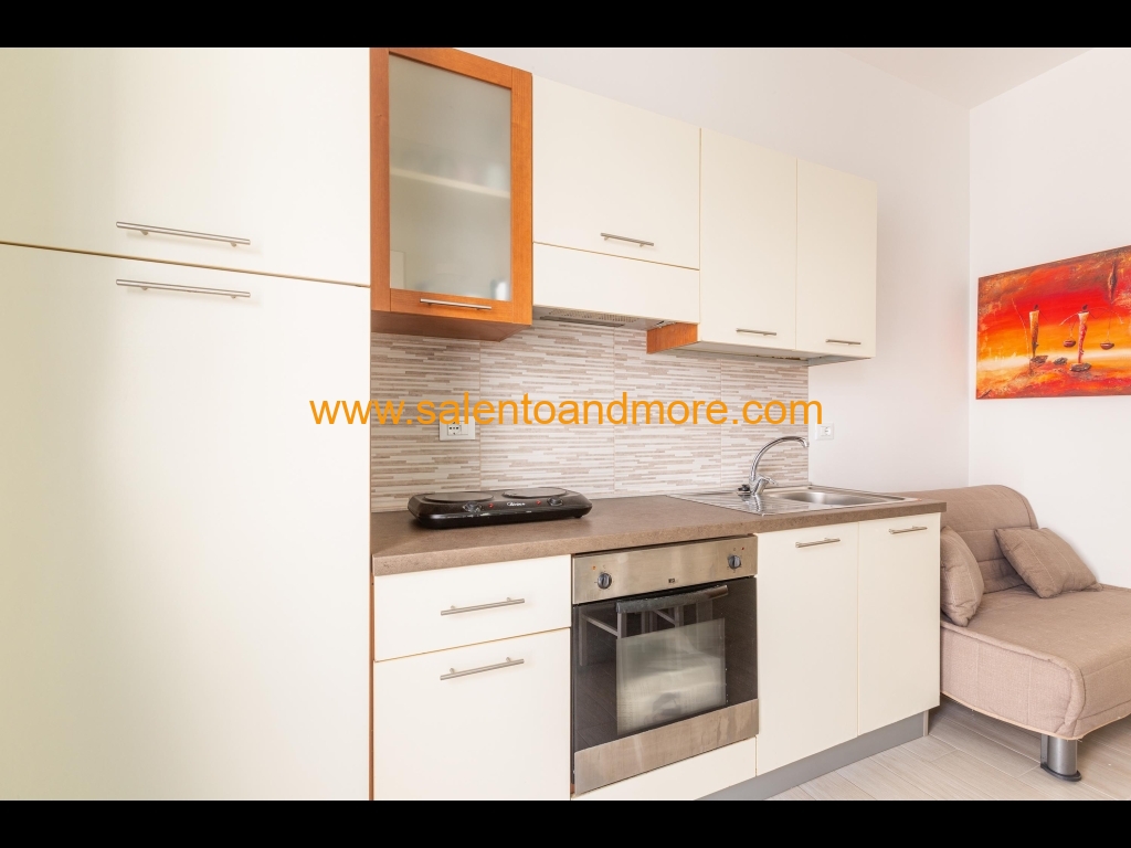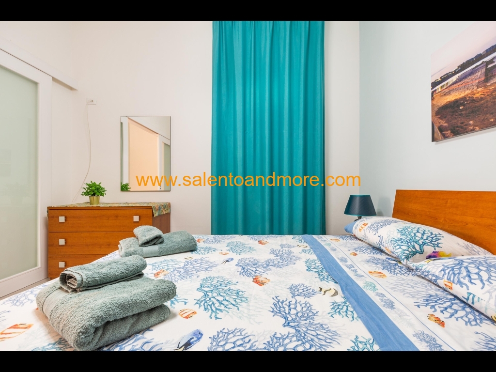 Bilocale indipendente situato a Lido Marini, marina del comune di Salve, a piano terra, composto da una camera matrimoniale, disimpegno, bagno con doccia, tinello con angolo cottura e divano letto, terrazzino antistante la casa adibito anche per pranzo /cena all'aperto.