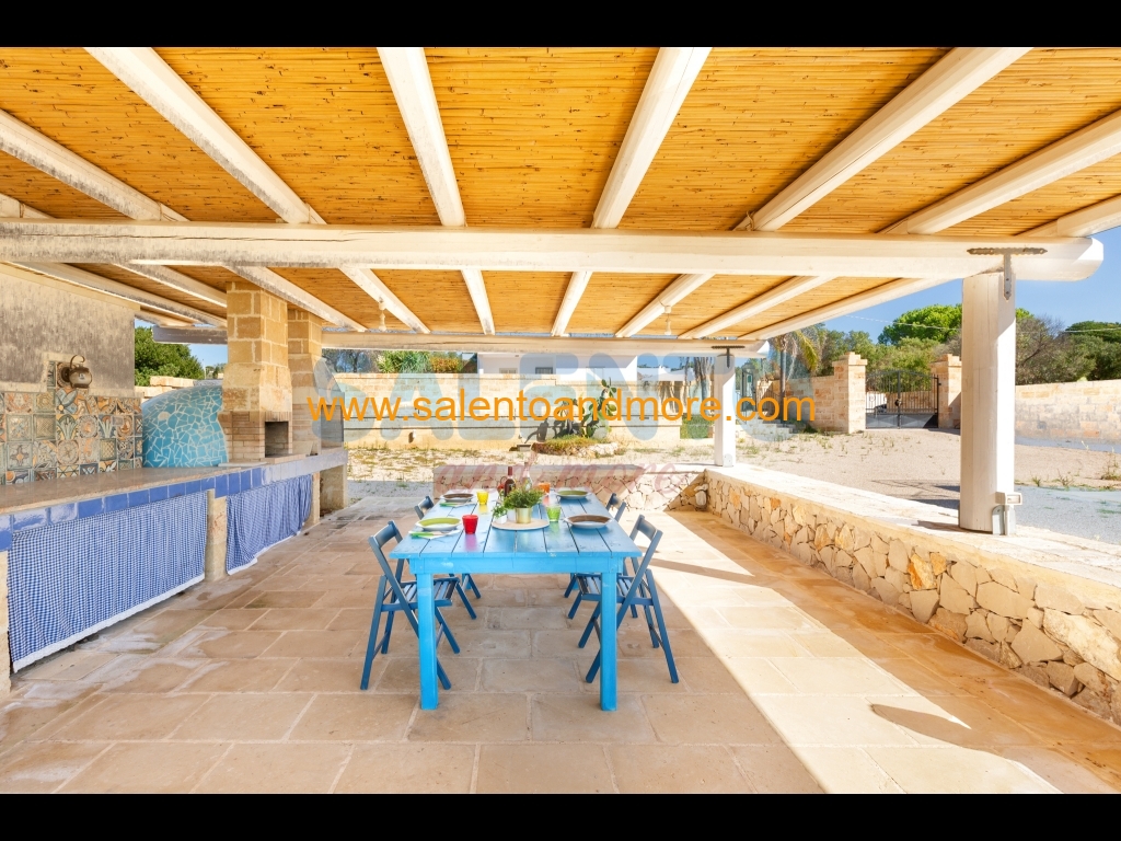 All'esterno troverete ampi spazi attrezzati, una pratica doccia con acqua calda, meraviglioso porticato attrezzato con barbecue, forno a legna, piano cottura e lavandino per poter cenare e pranzare all'aria aperta e una piscina, a sfioro dal porticato di casa, ( 8x3 h 1.40) di cui godere dopo una giornata al mare o in una calda serata d'estate.