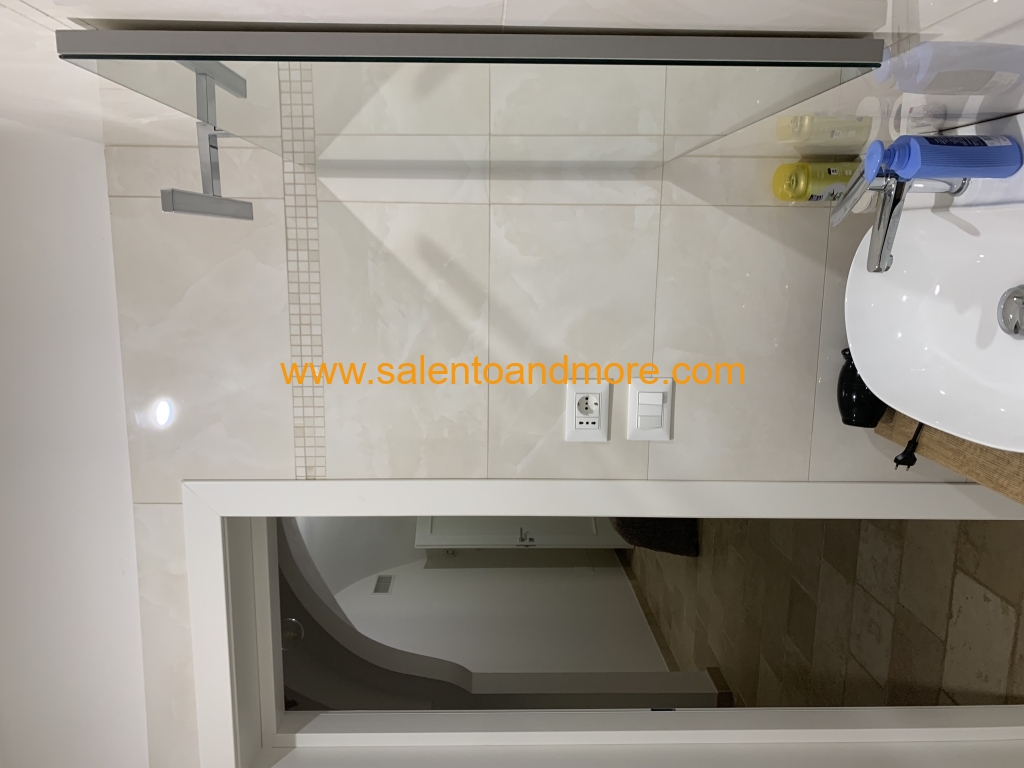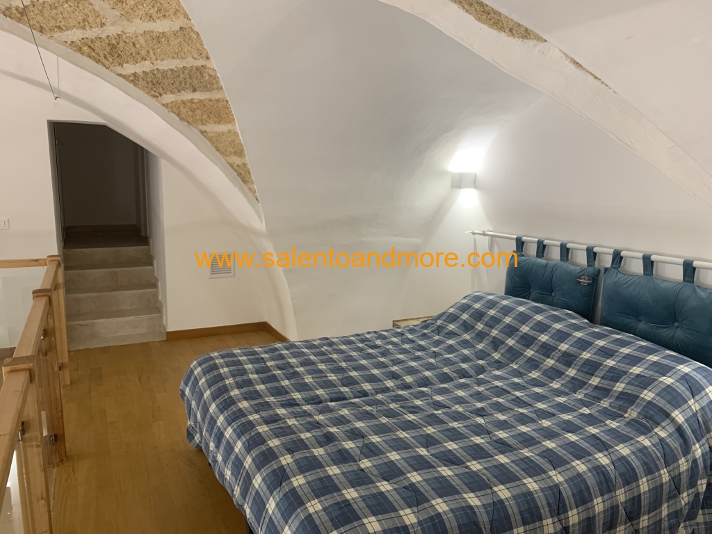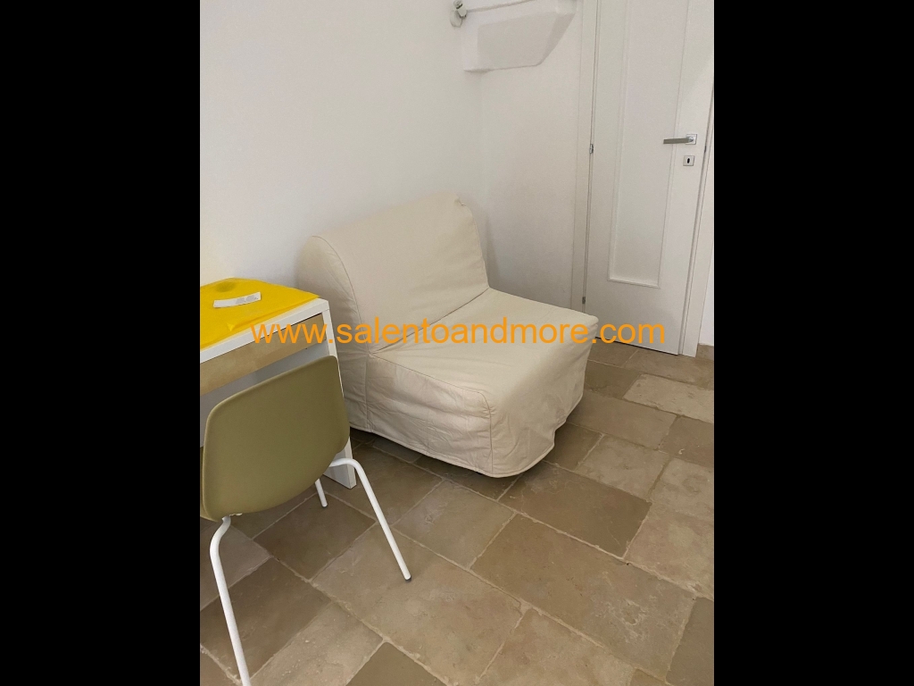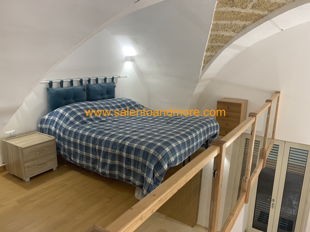 Questo alloggio per ferie nel centro di Salve comprende un'ampia stanza da letto matrimoniale voltata a stella con poltrona letto e piccolo bagno personale e un open-space soppalcato dotato di secondo letto matrimoniale con bagno personale. Questo grazioso alloggio si trova a 4 km dal mare (località Pescoluse le Maldive del Salento).