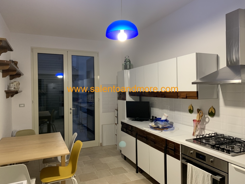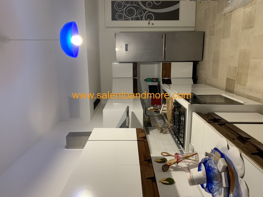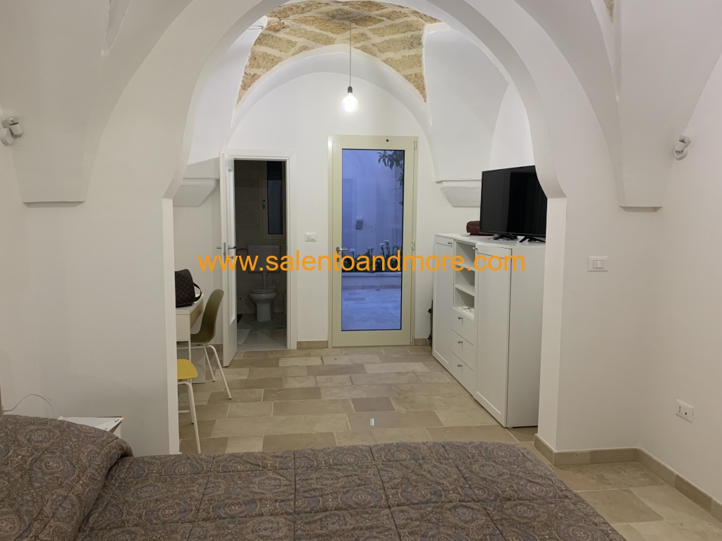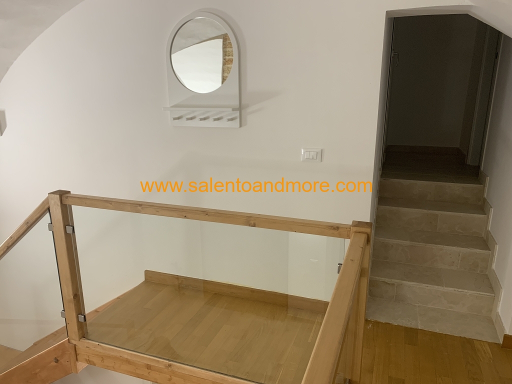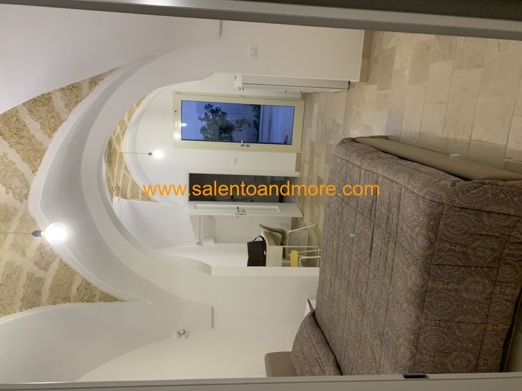 Questo alloggio per ferie nel centro di Salve comprende un'ampia stanza da letto matrimoniale voltata a stella con poltrona letto e piccolo bagno personale e un open-space soppalcato dotato di secondo letto matrimoniale con bagno personale. Questo grazioso alloggio si trova a 4 km dal mare (località Pescoluse le Maldive del Salento).