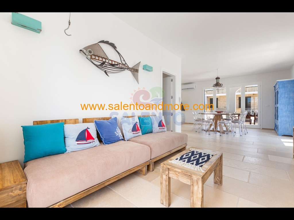 Villetta dotata di ogni comfort, finemente arredata con arredamenti artigianali e vicina ad ogni servizio e attività, a soli 100 m dalla spiaggia.
